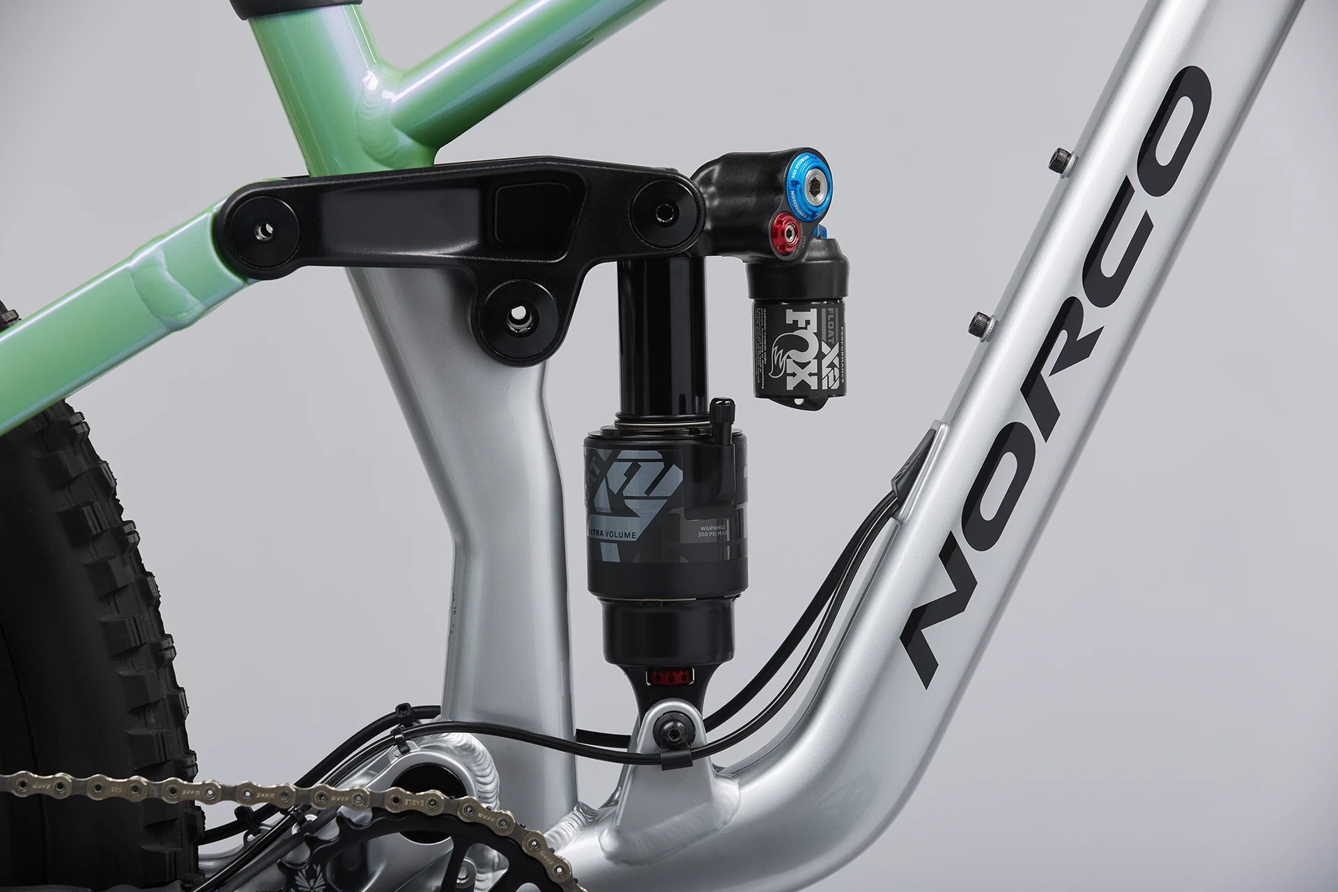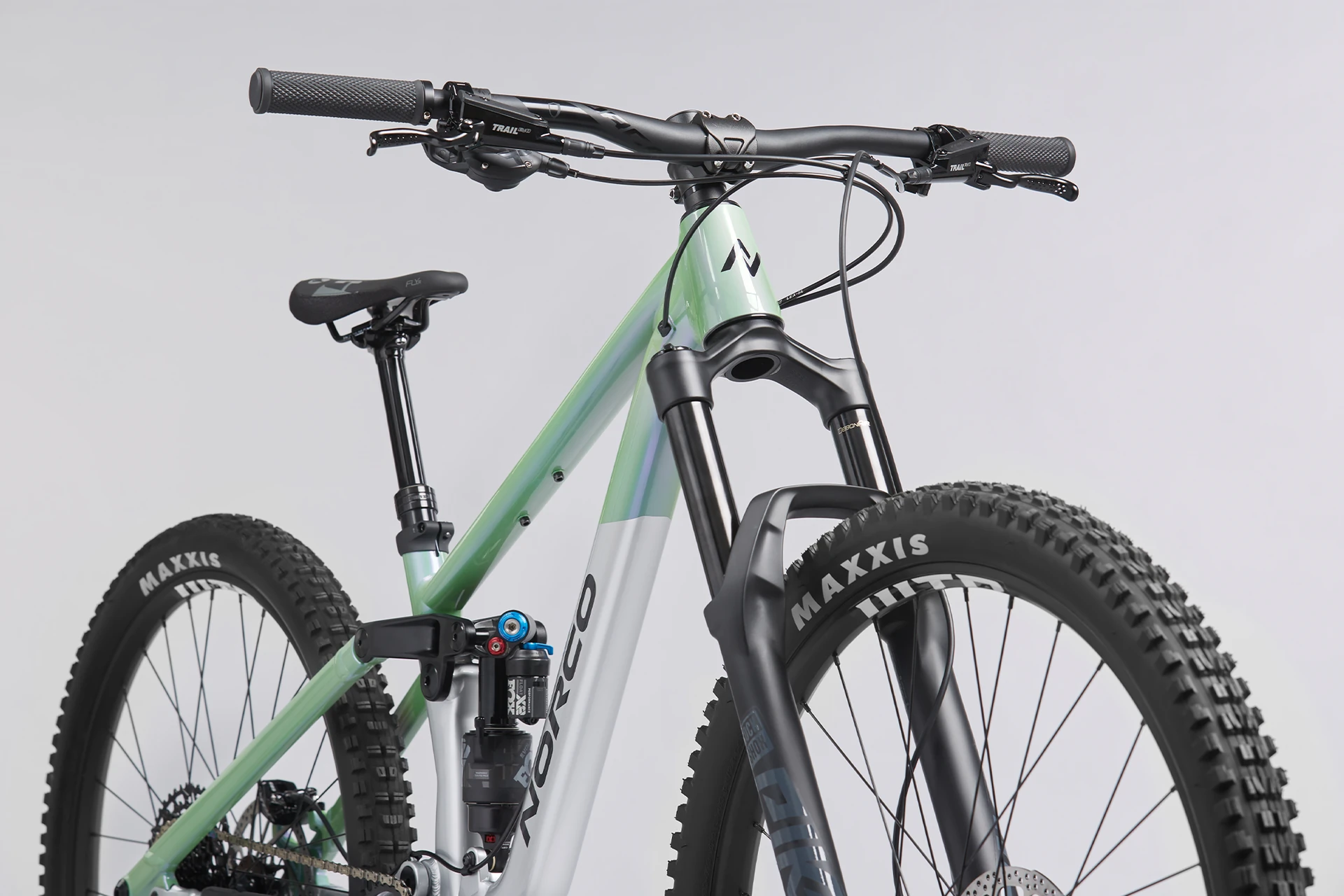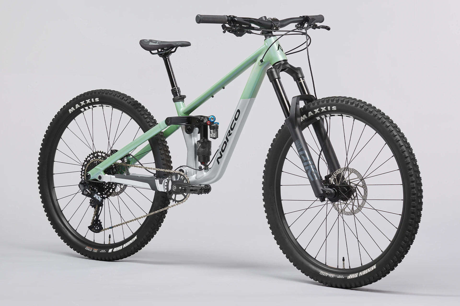 La suspension est réglée spécifiquement pour réagir parfaitement sous les pilotes plus légers avec une fourche RockShox Pike à décalage réduit et un amortisseur arrière Fox Float X2 Performance Elite avec réglage léger personnalisé.