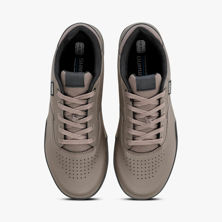 La chaussure à pédale plate de référence de Shimano offre un contrôle total sur les terrains techniques et accidentés. La tige en cuir synthétique sèche rapidement et vous protège des éléments, tandis que le panneau en mesh évacue l'air pour vous garder au frais lors des longs trajets. La nouvelle semelle extérieure ULTREAD GF utilise un composé de caoutchouc à rebond lent et une bande de roulement hexagonale à profil large pour un engagement sécurisé des broches et une stabilité multidirectionnelle, vous permettant d'affronter en toute confiance les sentiers difficiles.